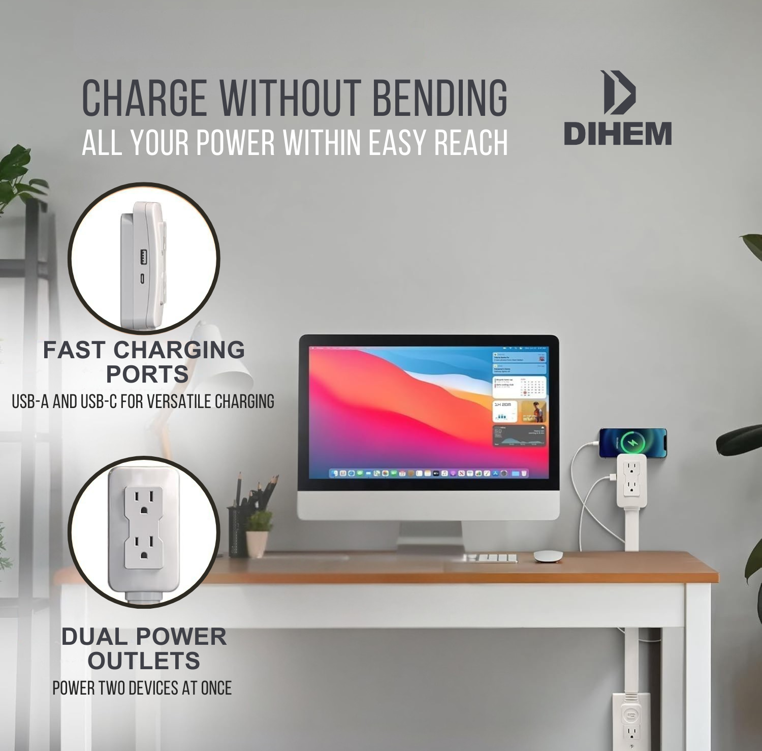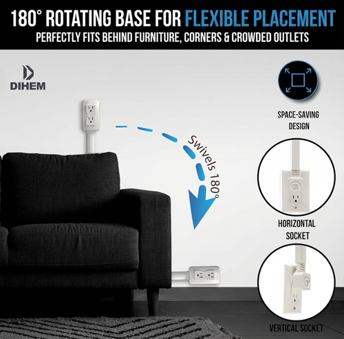 The Extendable Rotating Power Outlet is a space-saving solution designed to bring power to hard-to-reach outlets. It features an extendable reach from 22" to 34" with a 180° rotating head for maximum flexibility.